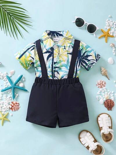 Children's Tropical Print Shirt & Suspender Shorts Set