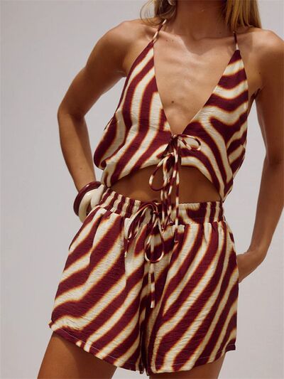 Zebra Print Halter Neck Top and Shorts Set