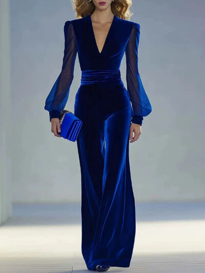 Velvet Wide Leg Jumpsuit with Sheer Sleeves