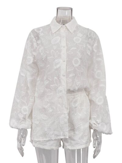 Floral Embroidered Shirt and Shorts Set