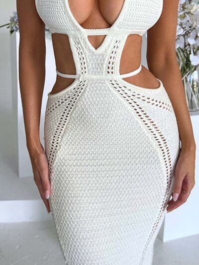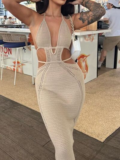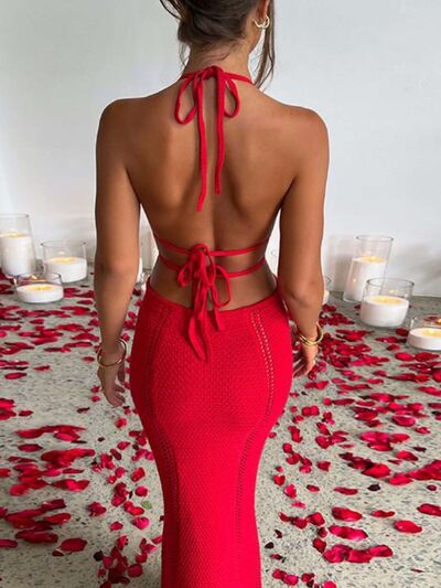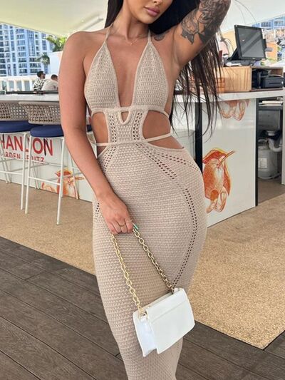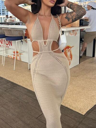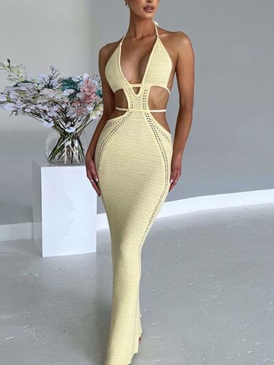 Halter Neck Cutout Knitted Maxi Dress