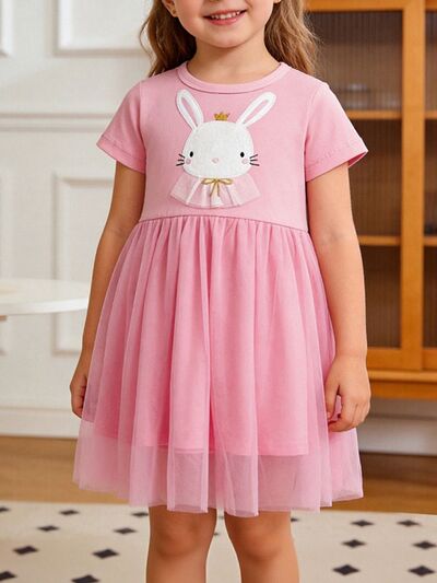 Children's Bunny Round Neck Short Sleeve Dress