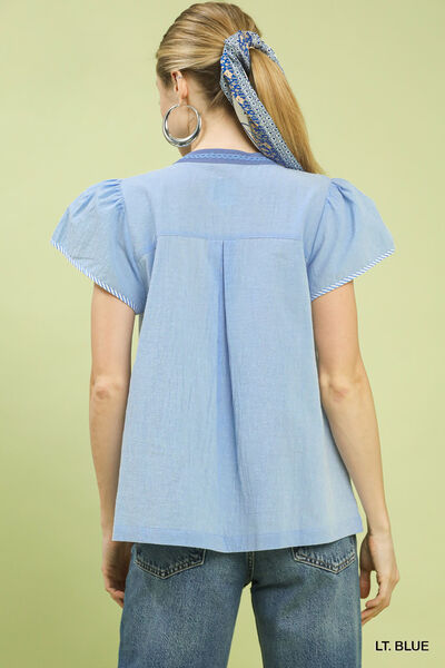 Umgee Abstract Applique Split Neck Top