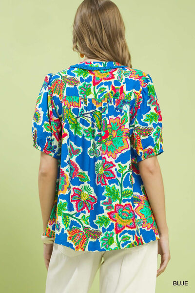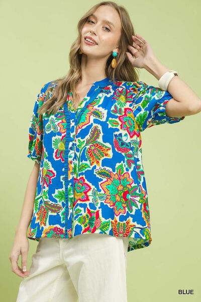 Umgee Floral Contrast-Trim Boho Blouse