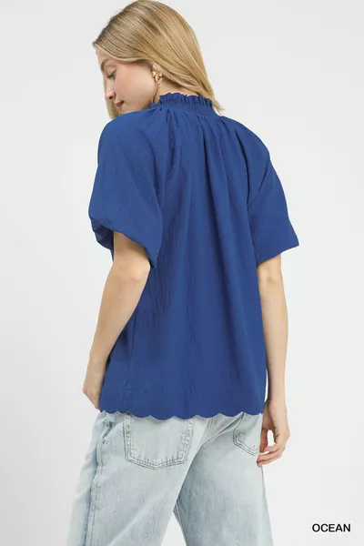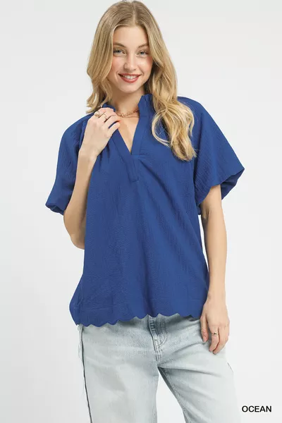 Scalloped Hem Textured Blouse