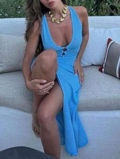 Crochet Knit Slit Cover-Up Dress