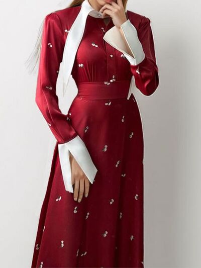 Full Size Contrast Collar Long Sleeve Midi Dress Plus Size