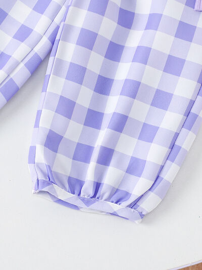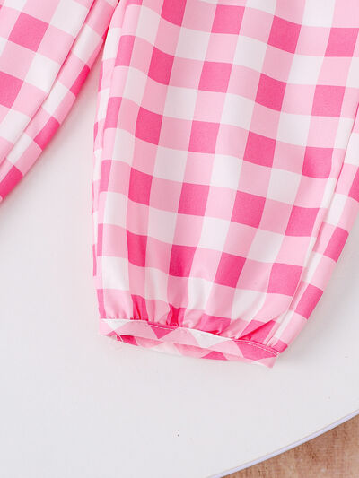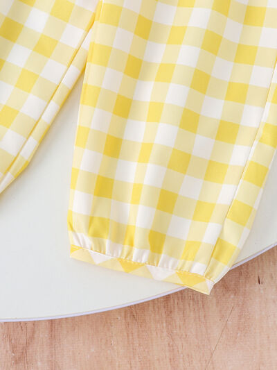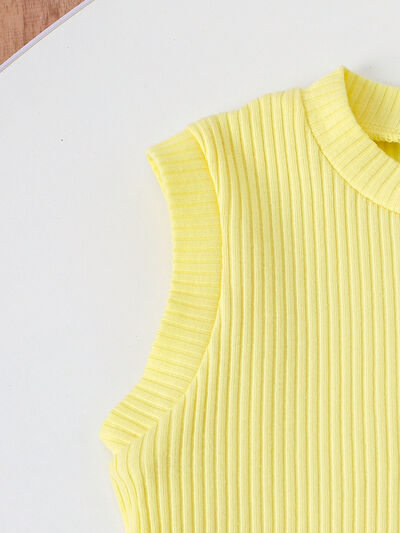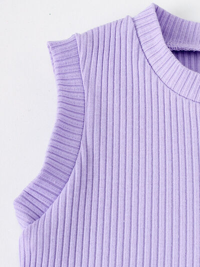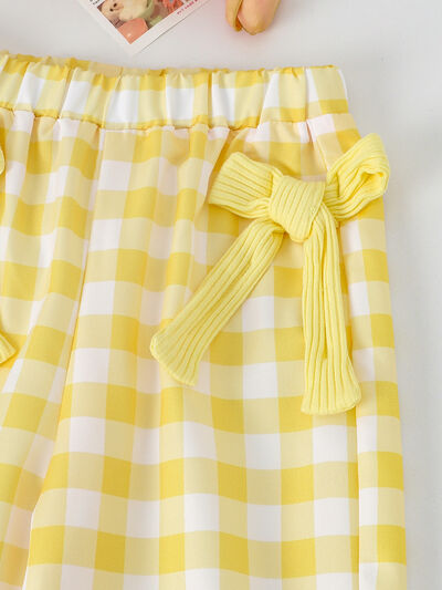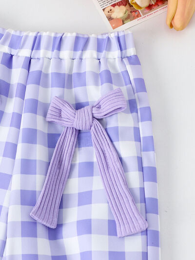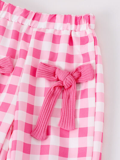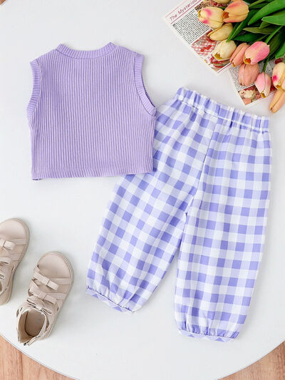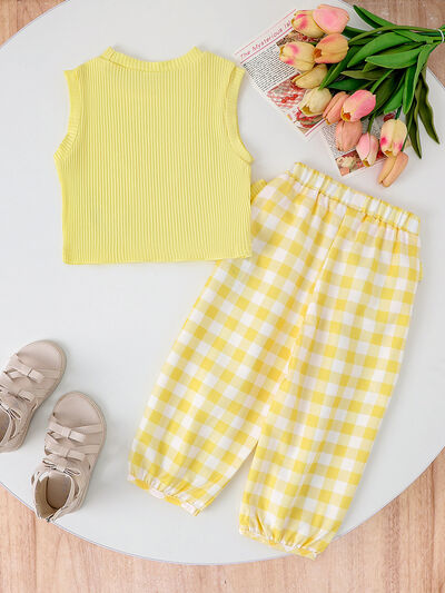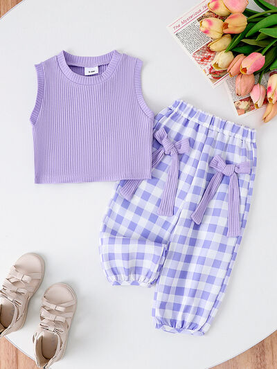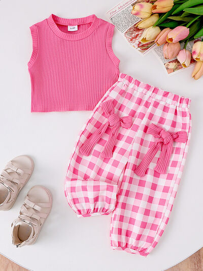 Children's Ribbed Tank Top and Plaid Pants Set with Bows