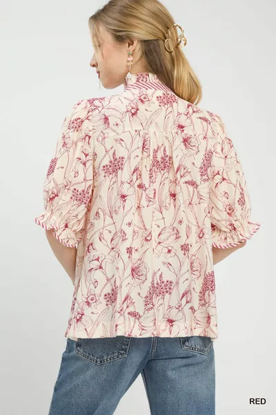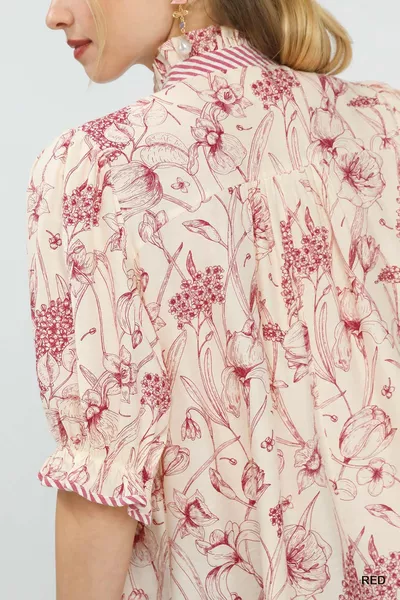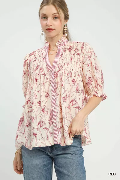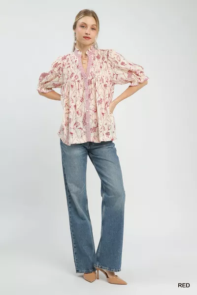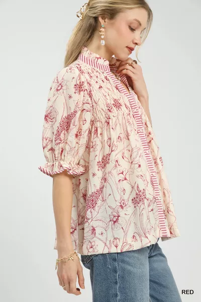 Umgee Mixed Print Button Front Top