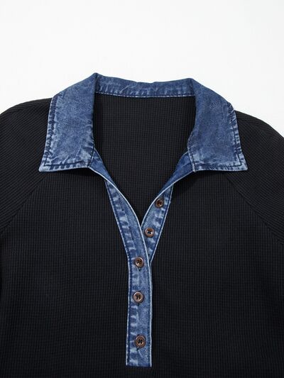 Denim Trim Button Detail Top