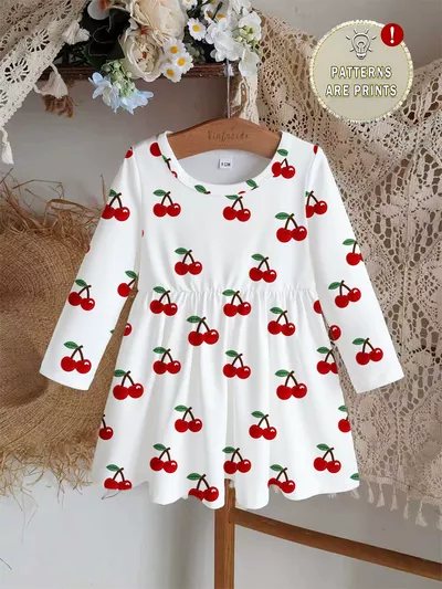 Children's Cherry Print Long Sleeve Casual Dress