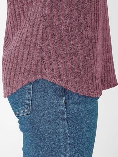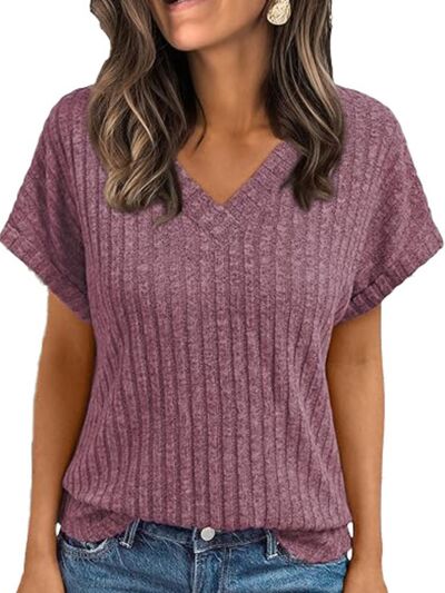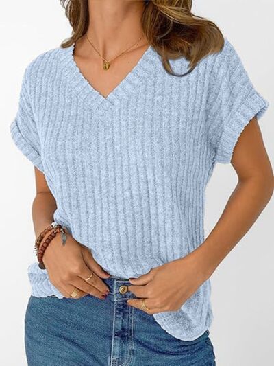 Ribbed Knit V-Neck Relaxed Fit T-Shirt