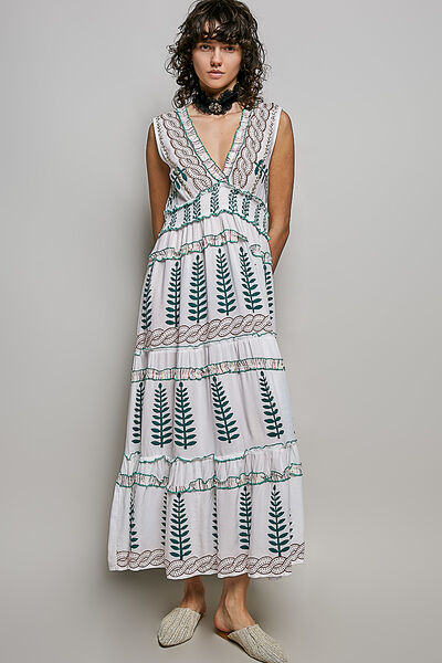 POL Floral Printed Sleeveless Tiered Dress with Smocked Waistband