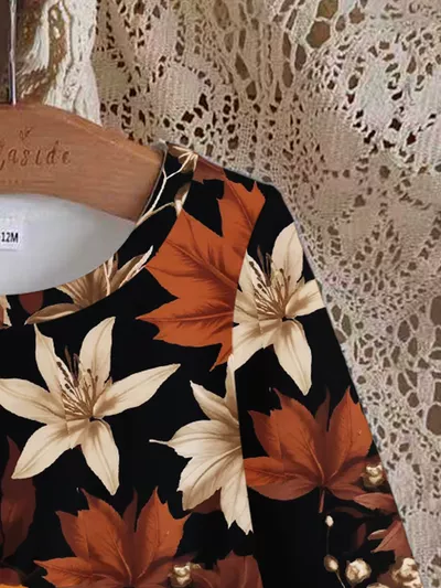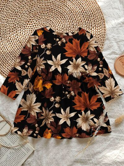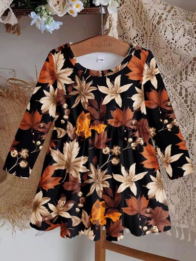 Children's Autumn Leaves Print Long Sleeve Dress