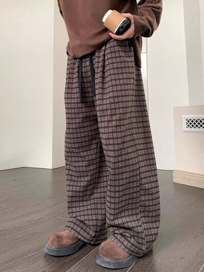 Men's Plus Size Plaid Pattern Wide Leg Casual Pants