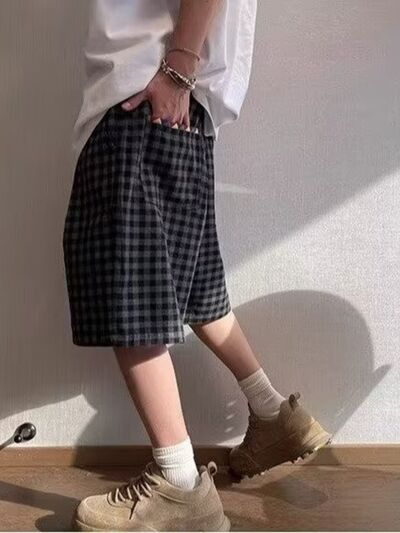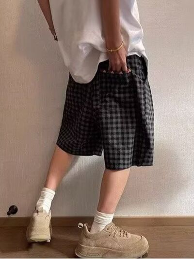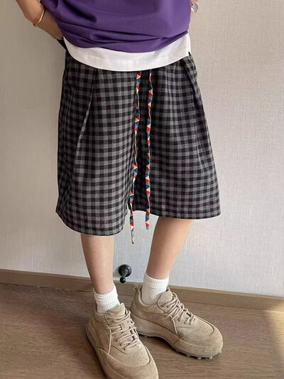 Men's Plus Size Plaid Drawstring Casual Shorts