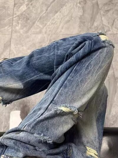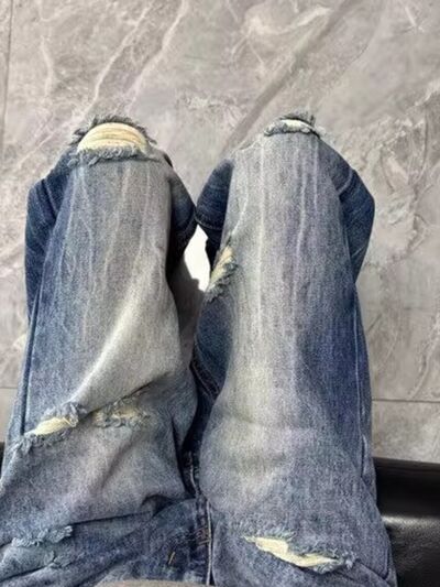 Men's Full Size Distressed Wide Leg Jeans Plus Size