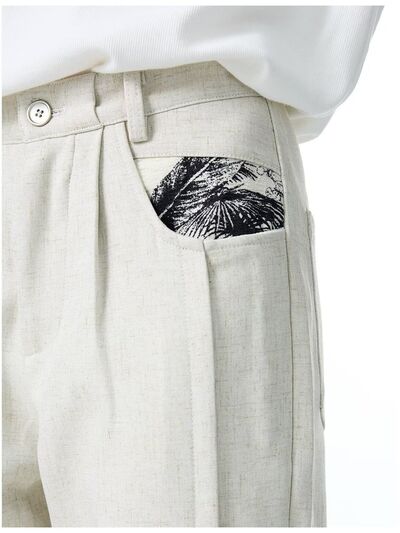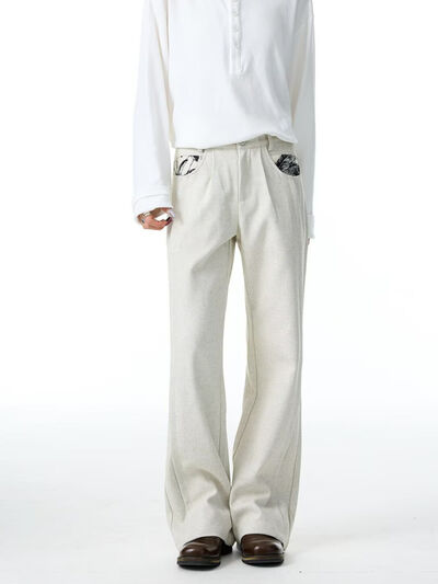 Men's Plus Size Wide Leg Pants with Patterned Pockets