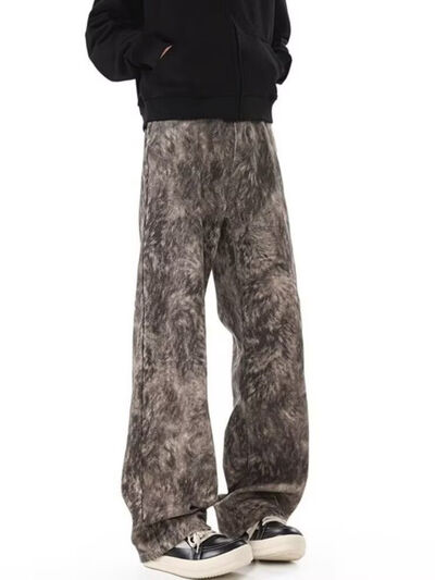 Men's Full Size Abstract Print Wide Leg Jeans Plus Size