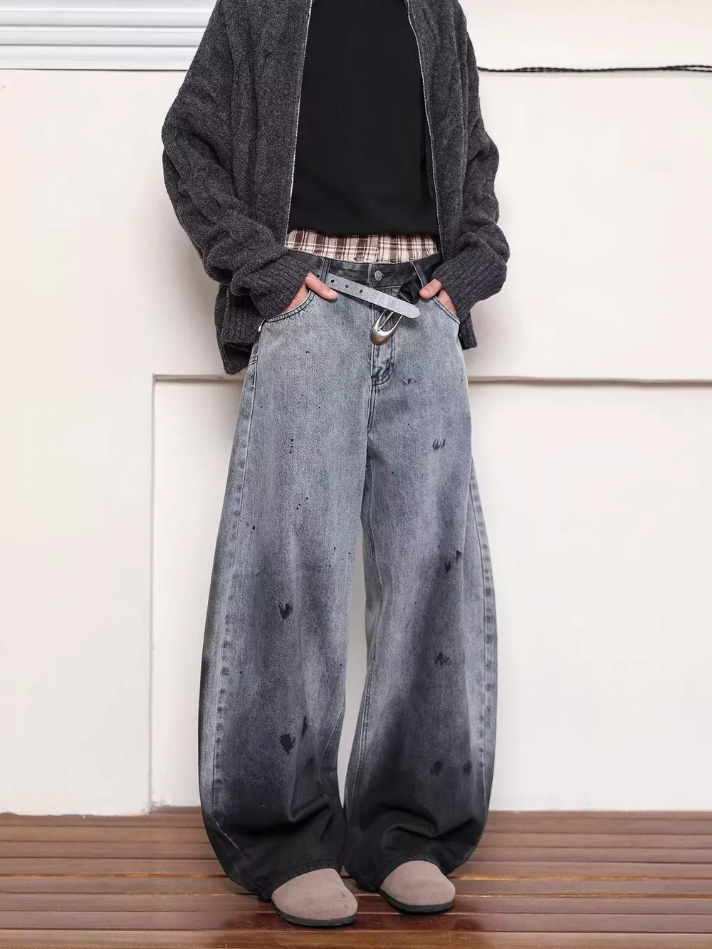 Men's Full Size Washed Wide Leg Jeans Plus Size