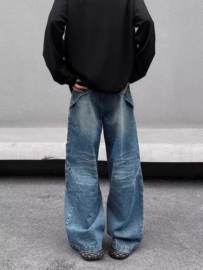Men's Full Size Washed Wide Leg Jeans Plus Size