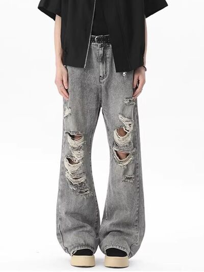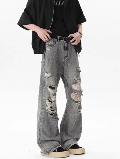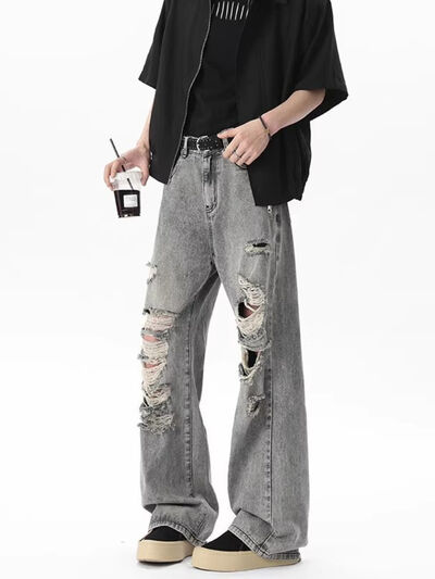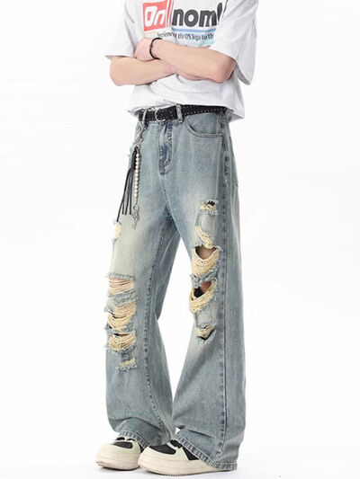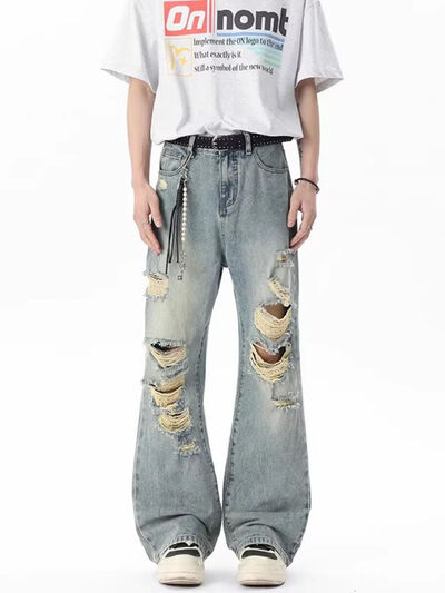 Men's Full Size Distressed Wide Leg Jeans Plus Size