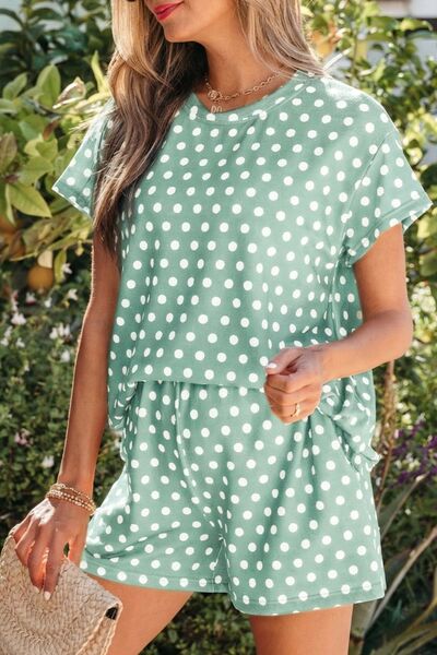 Polka Dot Print Tee and Shorts Set