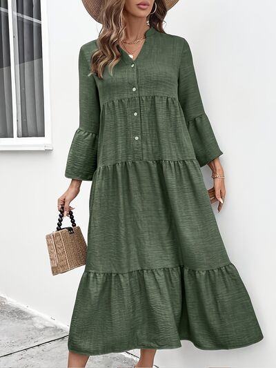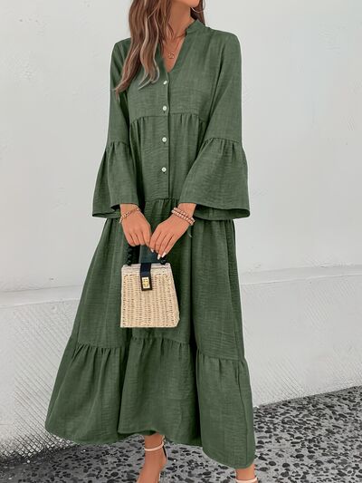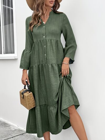 Button Front Tiered Midi Dress