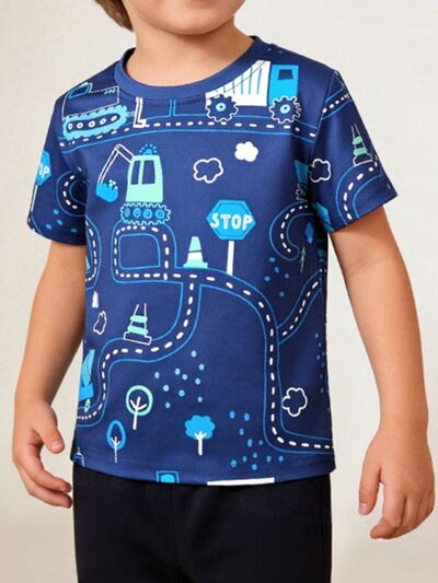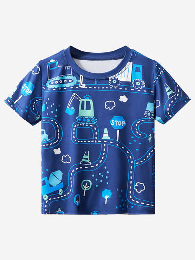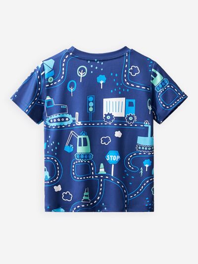 Children's Fun Road Construction Print Short Sleeve Tee