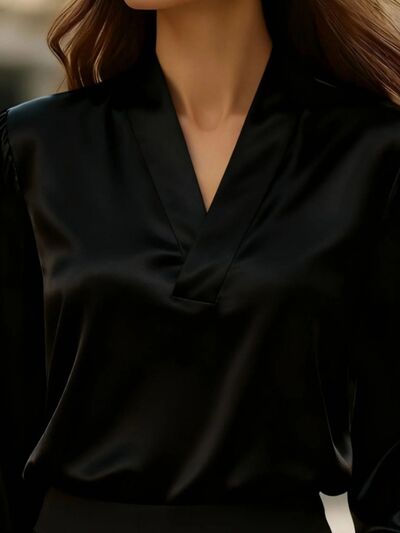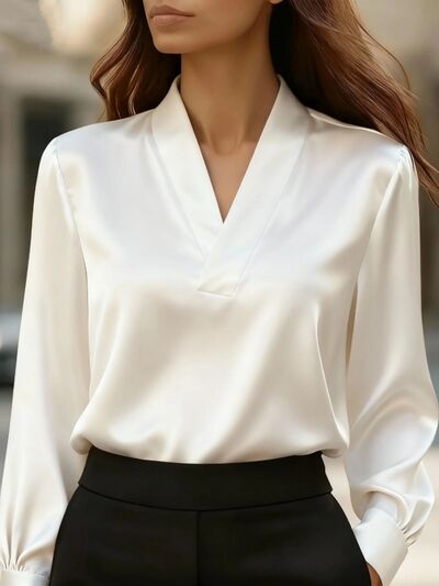 Satin V-Neck Long Sleeve Blouse