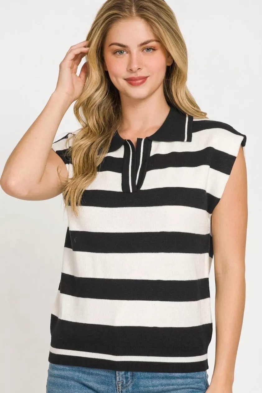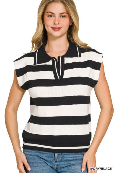 Zenana Viscose Striped Collared Sweater Vest
