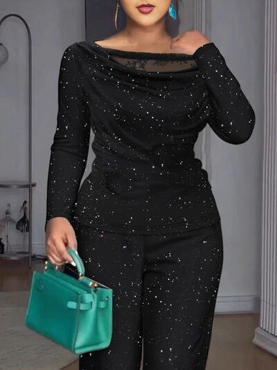 Glitter Long Sleeve Top and Pants Set