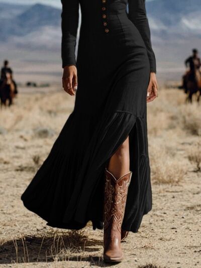 Slit Long Sleeve Tiered Maxi Dress