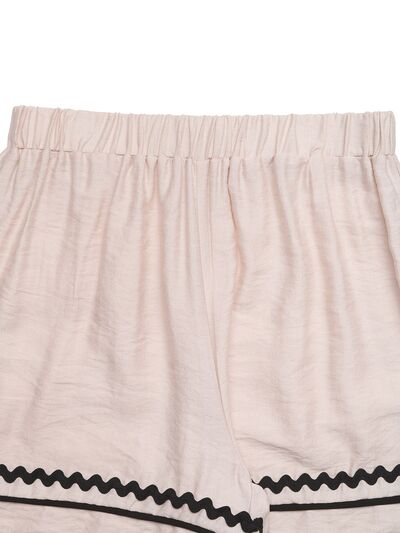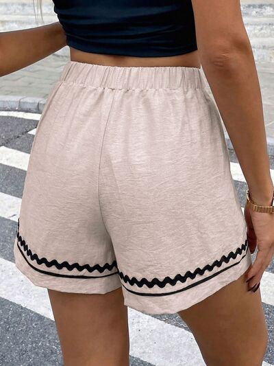 Elastic Waist Wavy Trim Casual Shorts