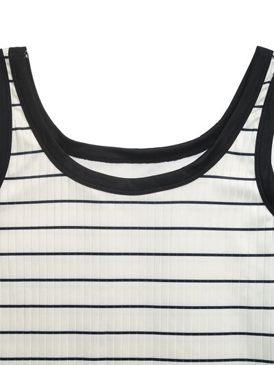 Striped Sleeveless Ribbed Knit Midi Dress