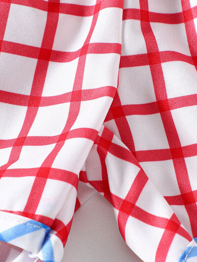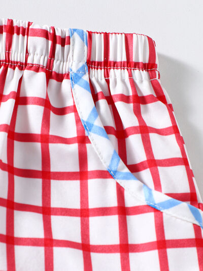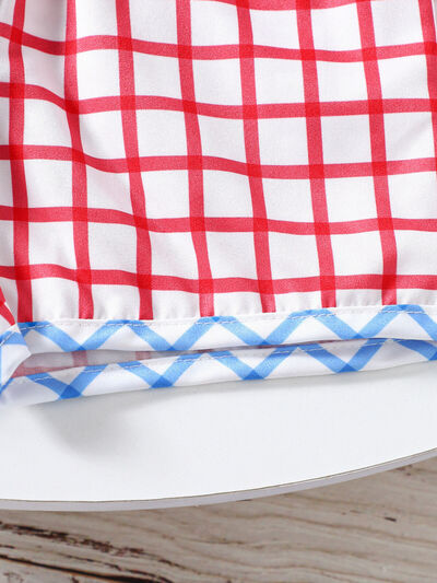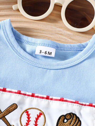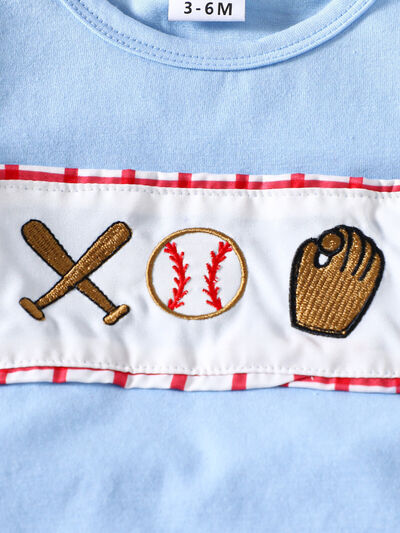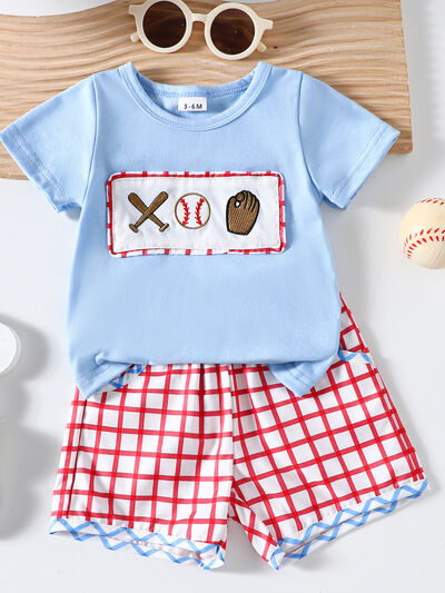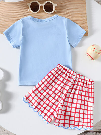 Children's Baseball Embroidered Top & Plaid Shorts Set