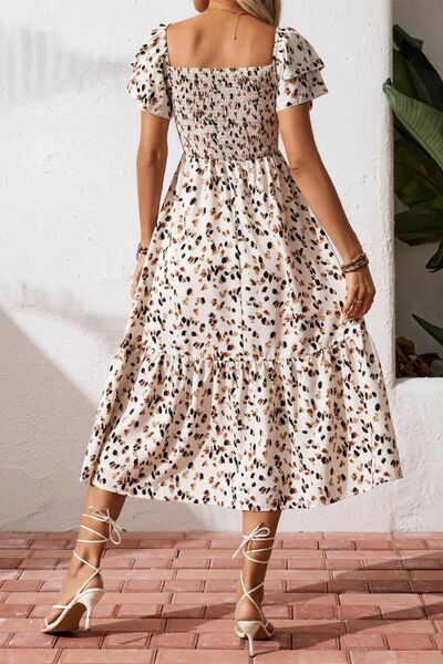 Square Neck Ruffle Sleeve Midi Dress