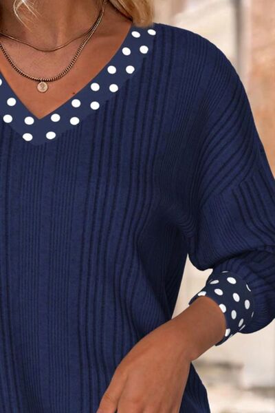 Polka Dot Bowknot Long Sleeve Blouse