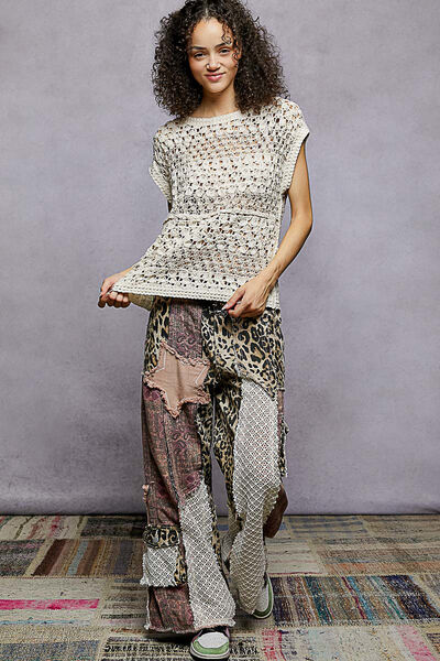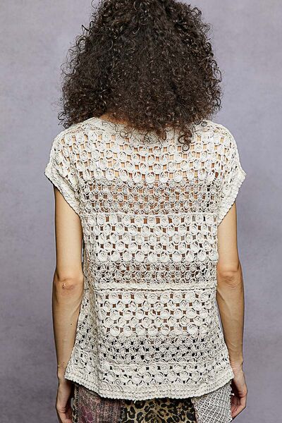 POL Openwork Round Neck Crochet Top