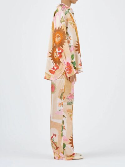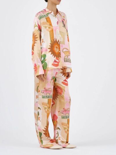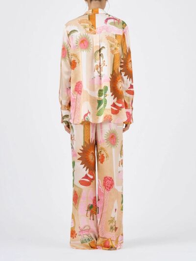 Animal Print Button Up Shirt and Pants Set