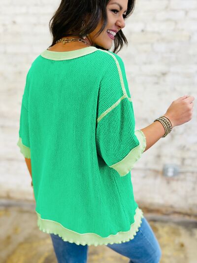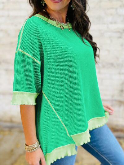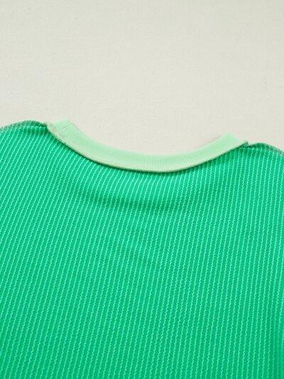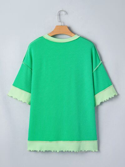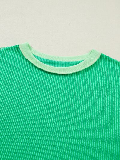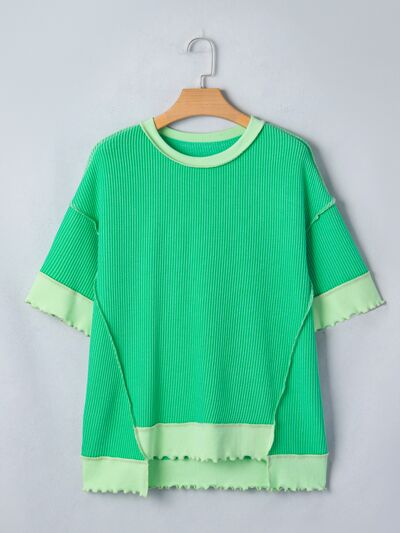 Loose Uneven Hem Twist Ribbed T Shirt
