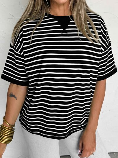 Stripe Ribbed Patchwork Seam Detail Half Sleeve Tee