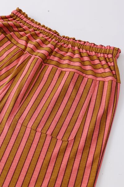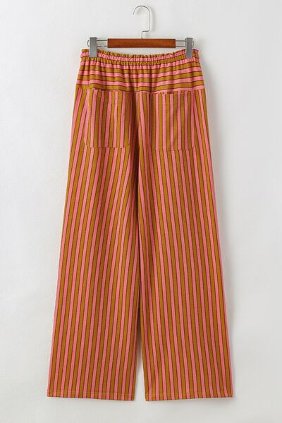 Stripe Button Pocket Tie Waist Casual Wide Leg Pants