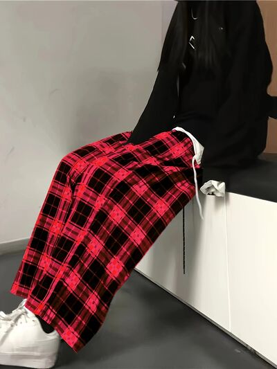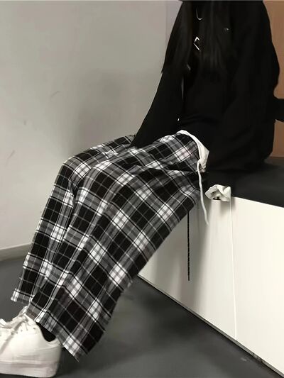Plaid High Waist Wide Leg Pants