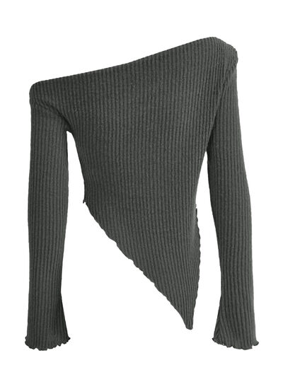 Asymmetrical One-Shoulder Ribbed Knit Top