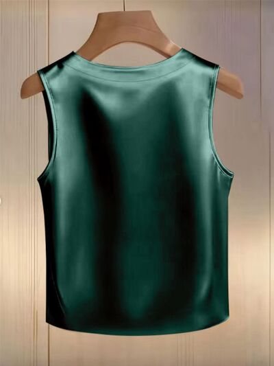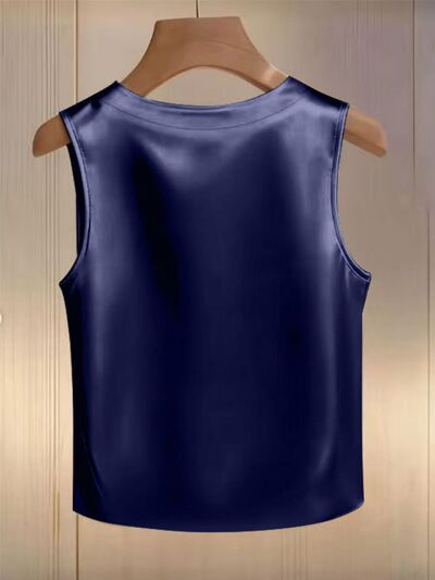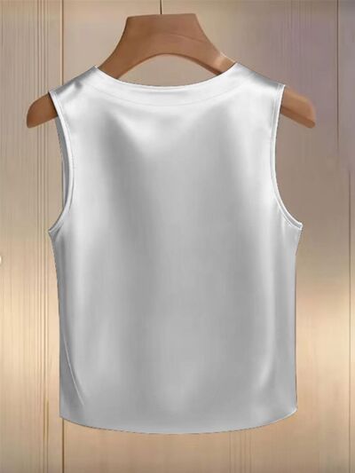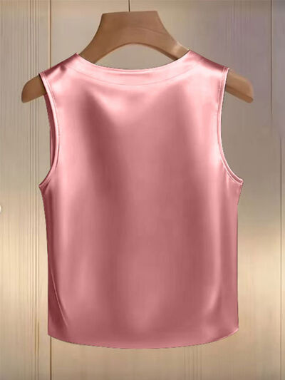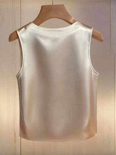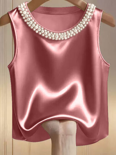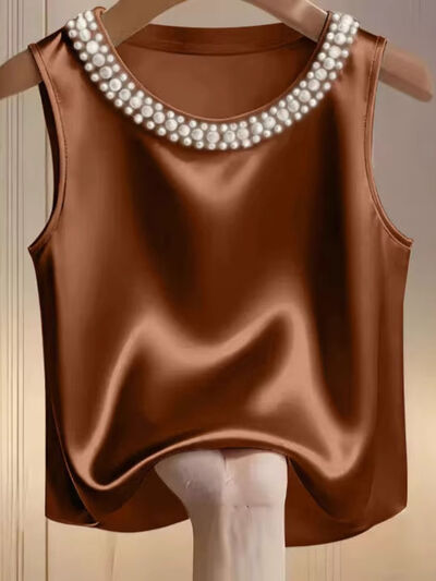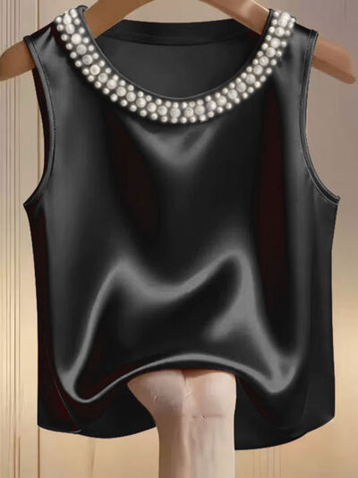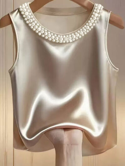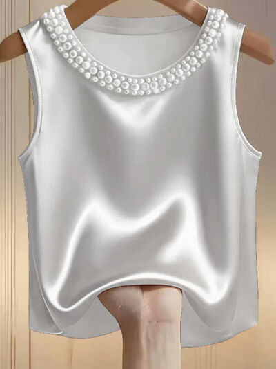 Pearl Embellished Satin Tank Top