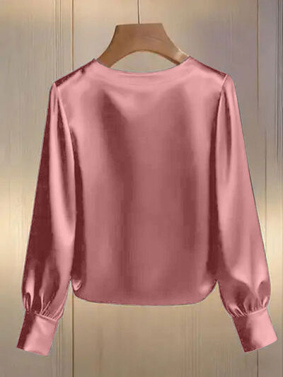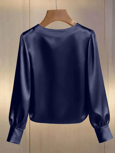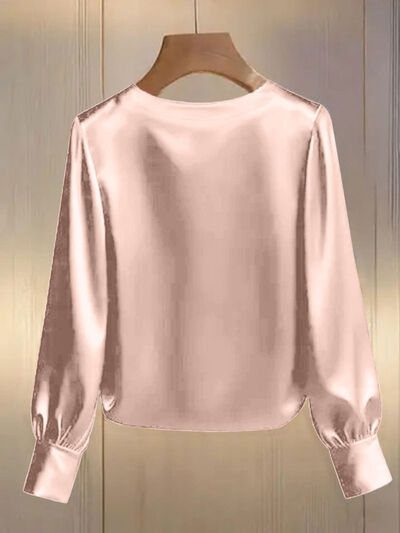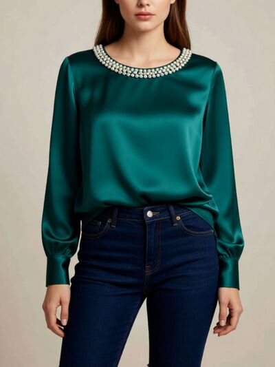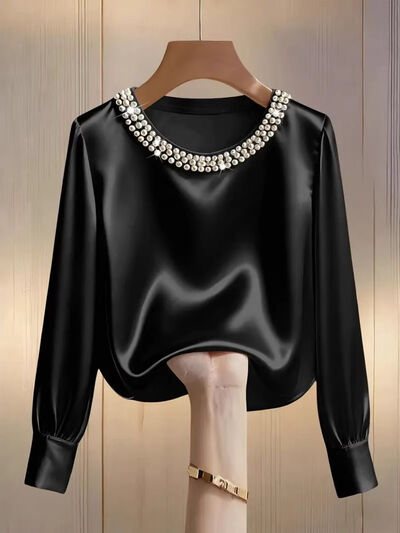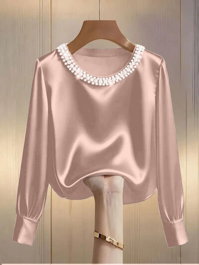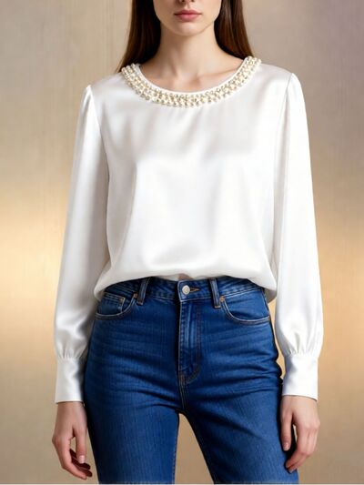 Pearl Trim Round Neck Silk Blouse