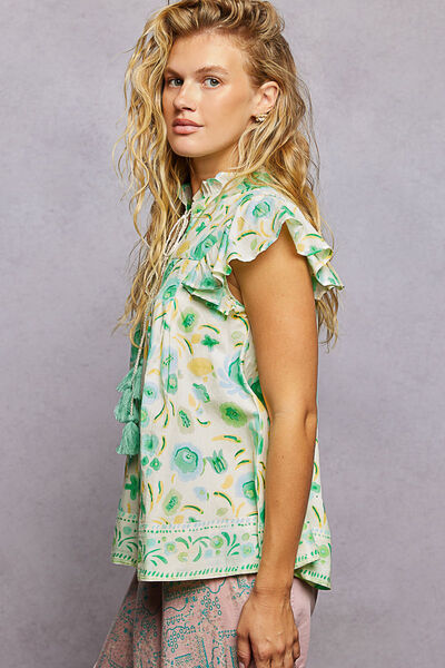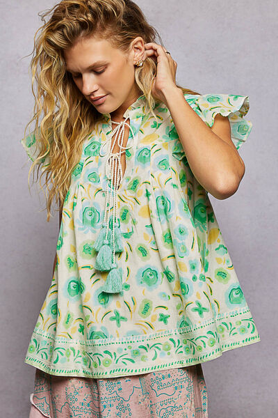 POL Tassel Tied Floral Flutter Sleeve Blouse