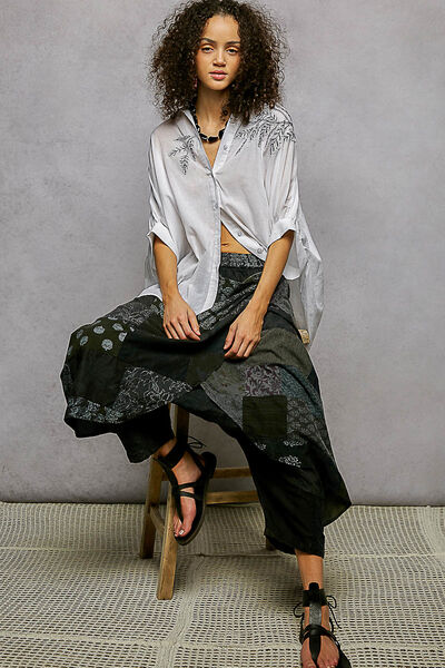 POL Button Down Embroidered Floral High-Low Hem Shirt