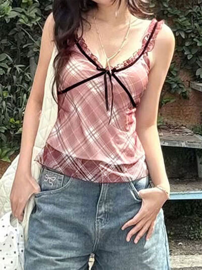 Plaid Ruffle Trim Cami